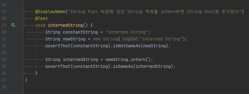 이번에도 intern() 메서드를 사용한 테스트 코드를 작성해 결과를 살펴보자.